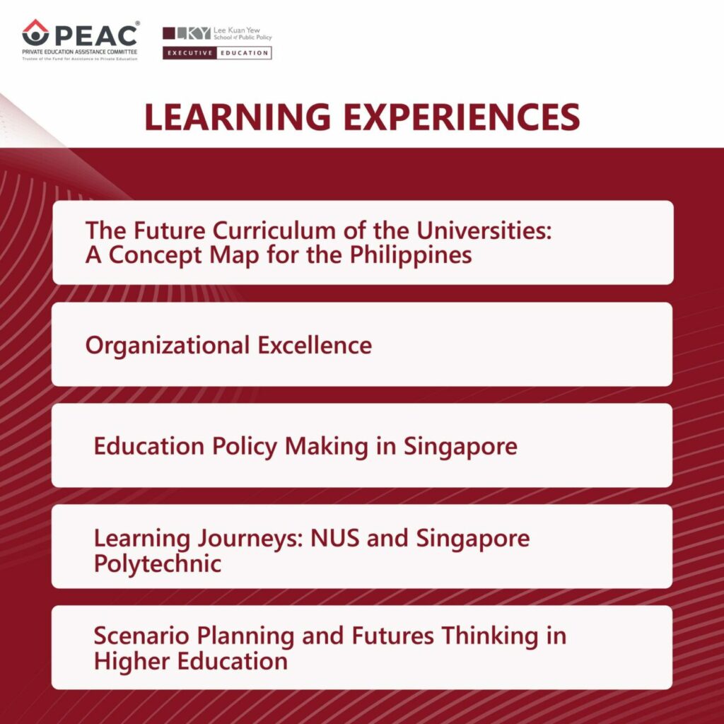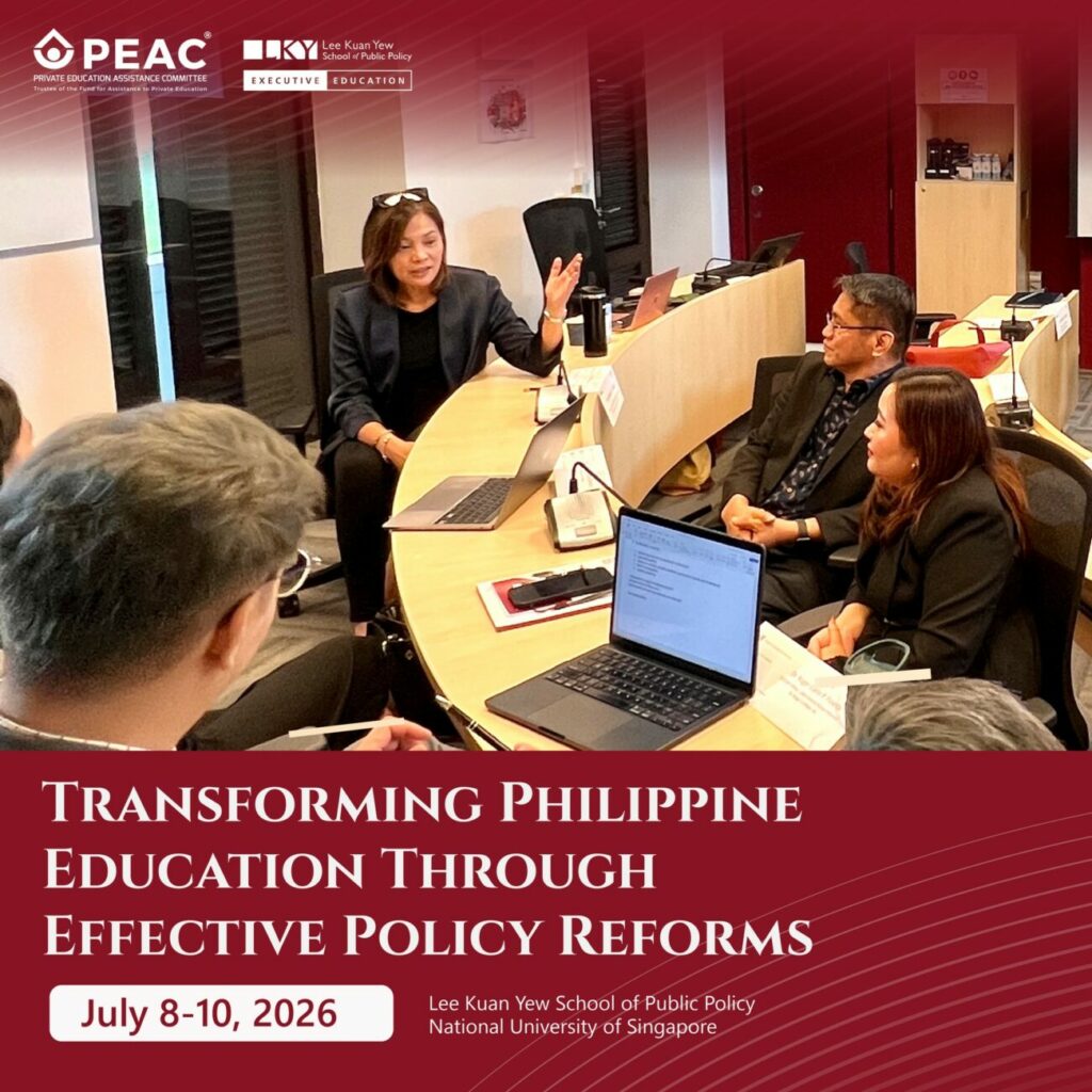 Empower your leadership in education with PEAC and the National University of Singapore! Join the 3-day executive course, 𝘛𝘳𝘢𝘯𝘴𝘧𝘰𝘳𝘮𝘪𝘯𝘨 𝘗𝘩𝘪𝘭𝘪𝘱𝘱𝘪𝘯𝘦 𝘌𝘥𝘶𝘤𝘢𝘵𝘪𝘰𝘯 𝘛𝘩𝘳𝘰𝘶𝘨𝘩 𝘌𝘧𝘧𝘦𝘤𝘵𝘪𝘷𝘦 𝘗𝘰𝘭𝘪𝘤𝘺 𝘙𝘦𝘧𝘰𝘳𝘮𝘴, happening 𝗝𝘂𝗹𝘆 𝟴-𝟭𝟬, 𝟮𝟬𝟮𝟲, at NUS Bukit Timah Campus in Singapore.